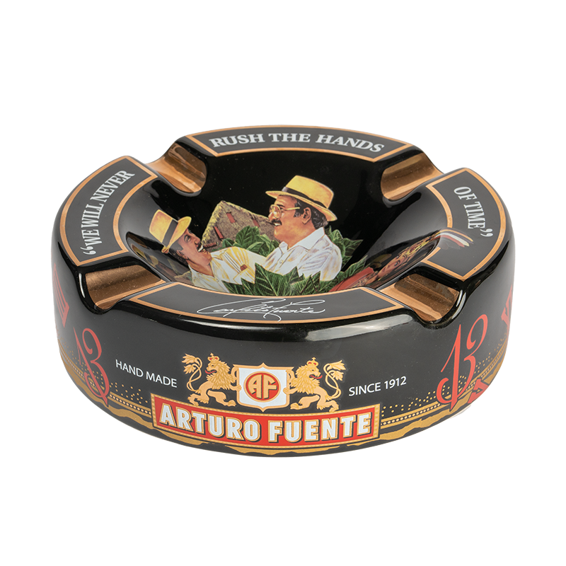 The Arturo Fuente Large Ashtray - Black is a perfect addition to any home or office. Crafted from high-quality materials, this durable ashtray offers enough room for a generous amount of ash and is the perfect accompaniment to your favorite cigar.